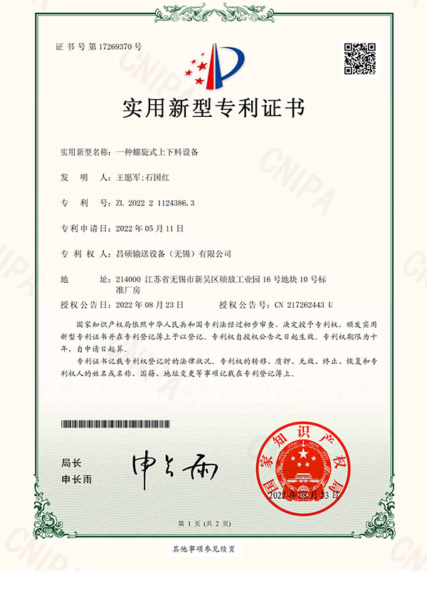 一种螺旋式上下料设备专利-传斯福